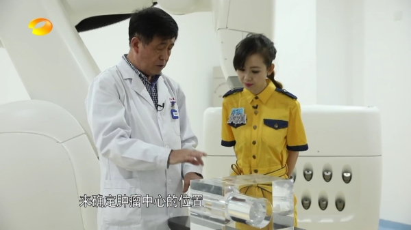 节目中的“三维立体定向放射手术机器人”,是广州中医药大学金沙洲医院国际肿瘤医疗中心引进的目前国内首台"全数字化安科锐M6立体定向放射外科机器人",它属于立体定向放射治疗(SBRT)的范畴,能够从三维立体的方向追踪病人体位、肿瘤位置和病人呼吸运动的反馈,并能在治疗过程中针对病人的肿瘤靶区(治疗的目标如肿瘤等)因呼吸运动而产生的微小移动的动态状态下通过医学影像的引导进行照射方向的实时修正。射波刀有着疗程短、剂量率高,治疗范围广、影像引导速度快和运动器官动态追踪能力强等优点。